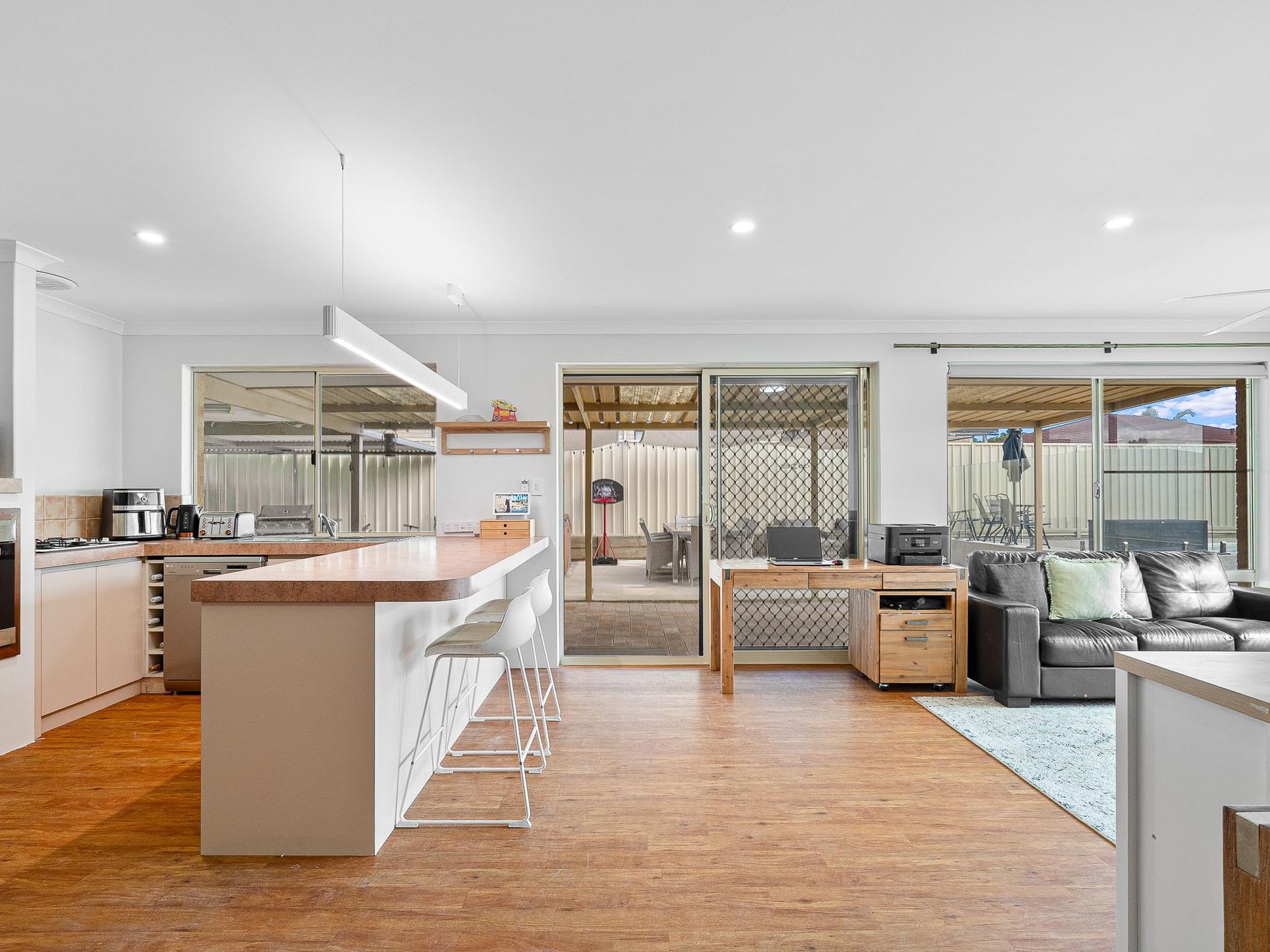 Step inside and you’ll find a practical, family-friendly design with multiple living zones — meaning no more fighting over the TV remote. The front living area offers a cosy retreat, while the central kitchen connects seamlessly to the dining and second living space, making everyday living and entertaining effortless.
